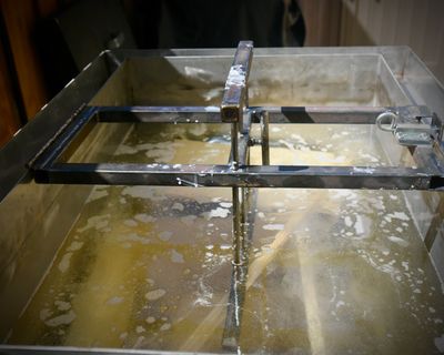 A solid pair of long-handled tongs is a must for removing wooden-ware from the dip tank safely and steadily.